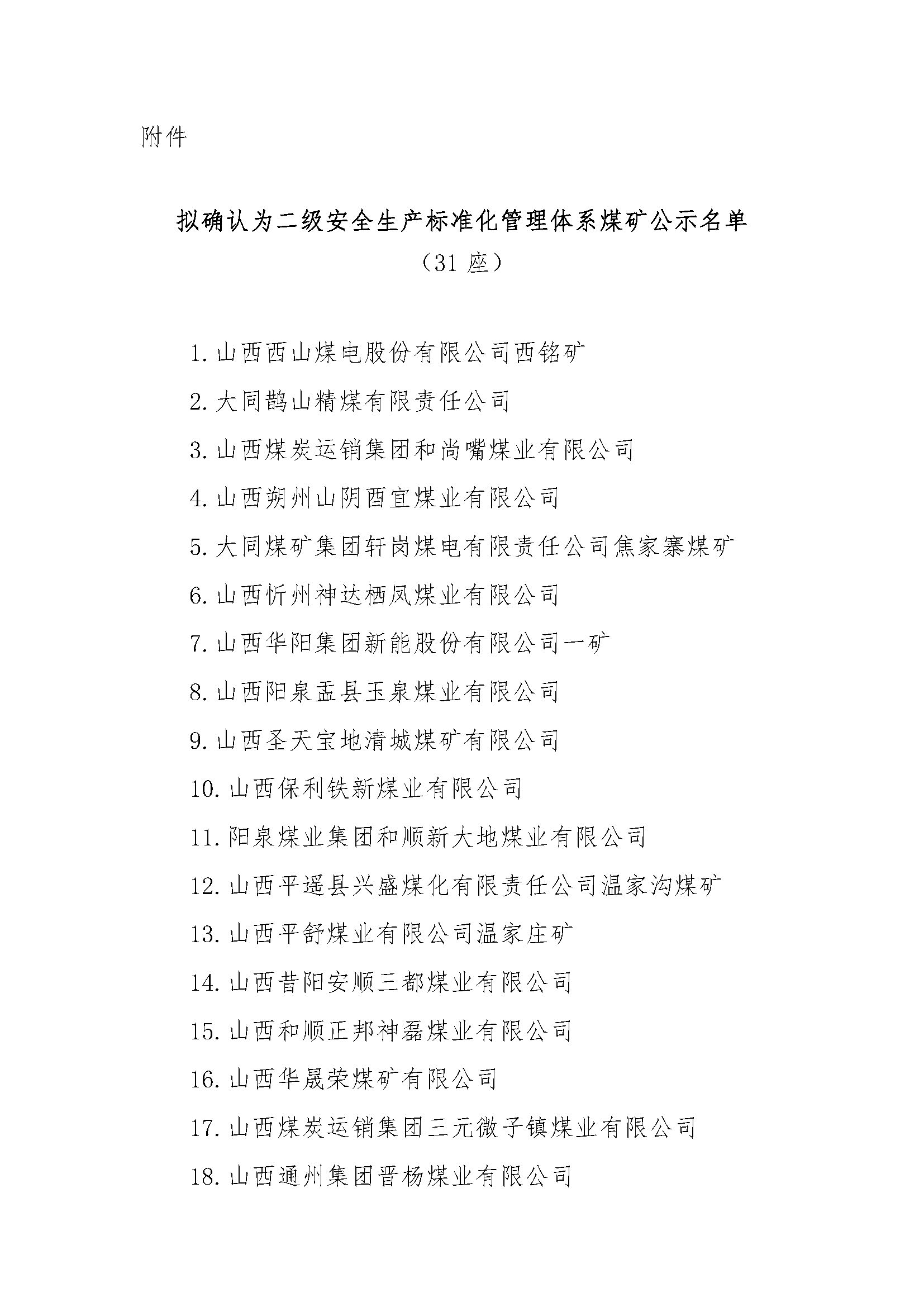 山西省拟确认二级安全生产标准化管理体系煤矿的公示