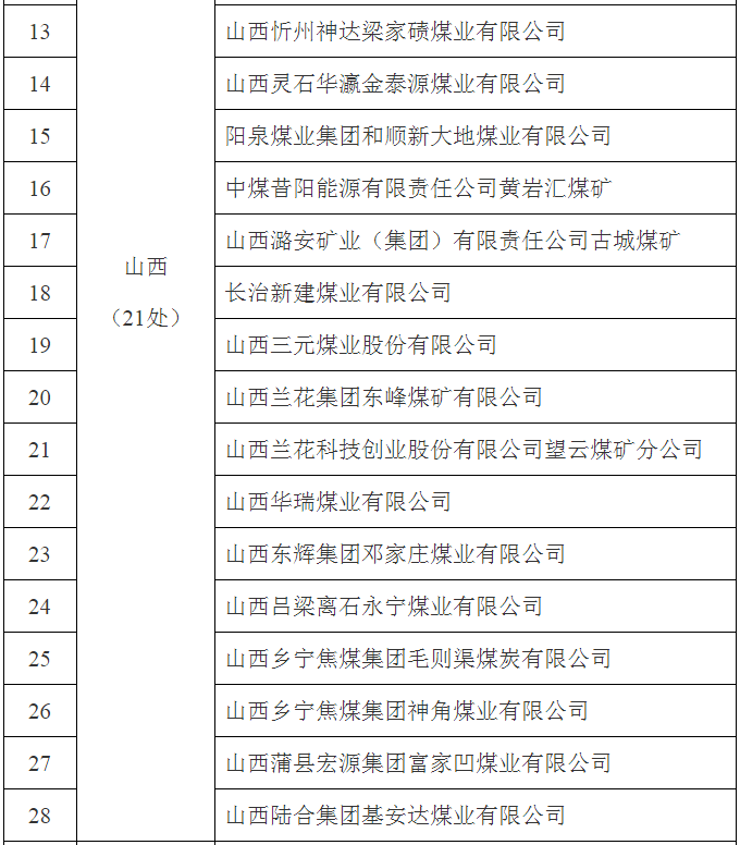 标准化管理体系一级达标煤矿名单