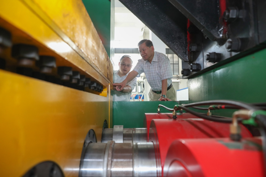 袁亮院士在实验室指导研究生开展动静组合加载冲击动力学研究。