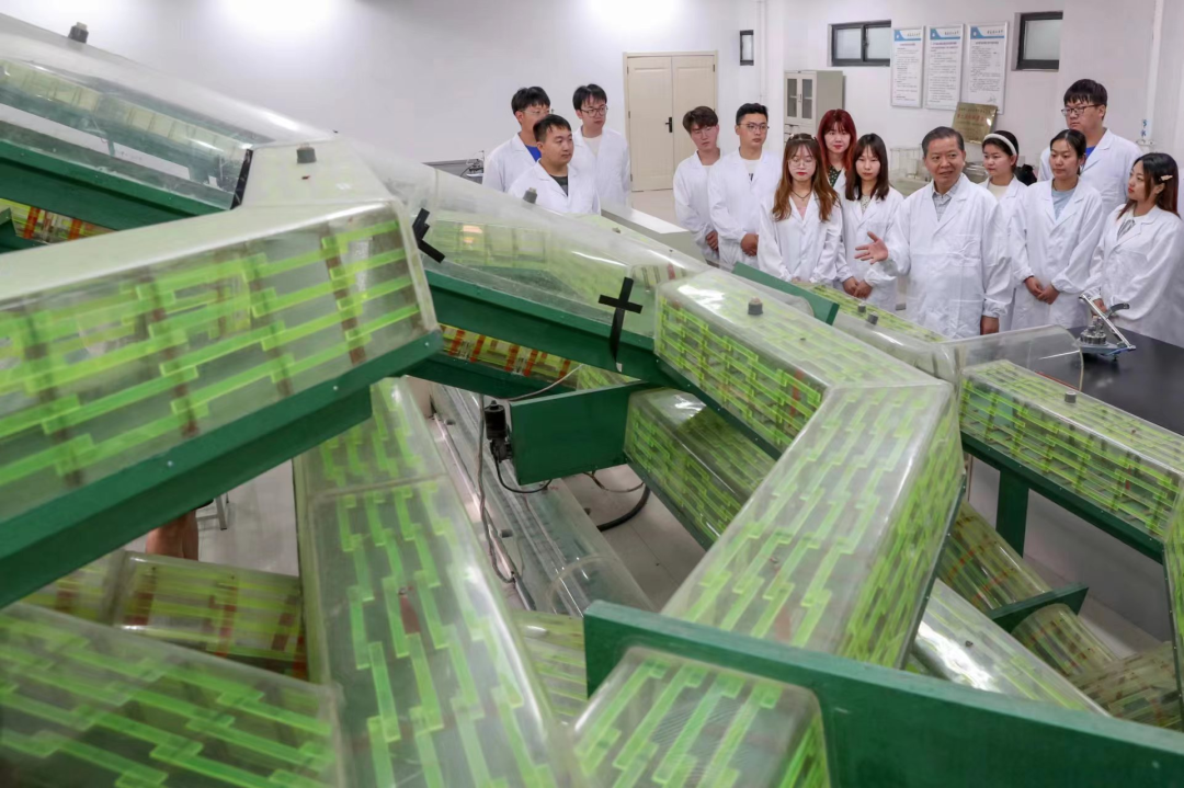 袁亮院士在矿井通风仿真实验室指导本科生测定通风管道风流点压力和风速.