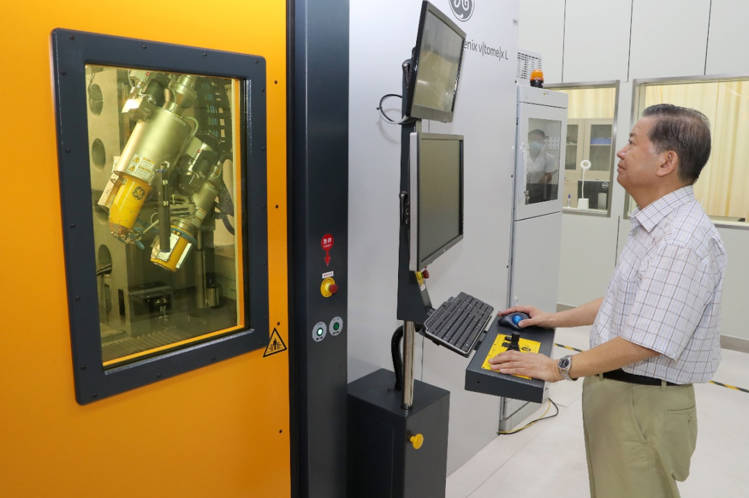 袁亮院士在微纳米CT实验室开展岩芯扫描三维重构实验。