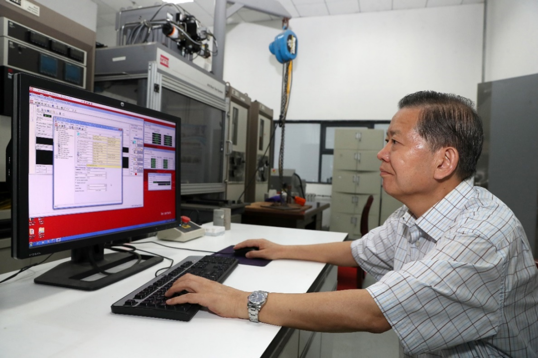 袁亮院士在MTS实验室研究高温岩石渗流耦合力学规律。